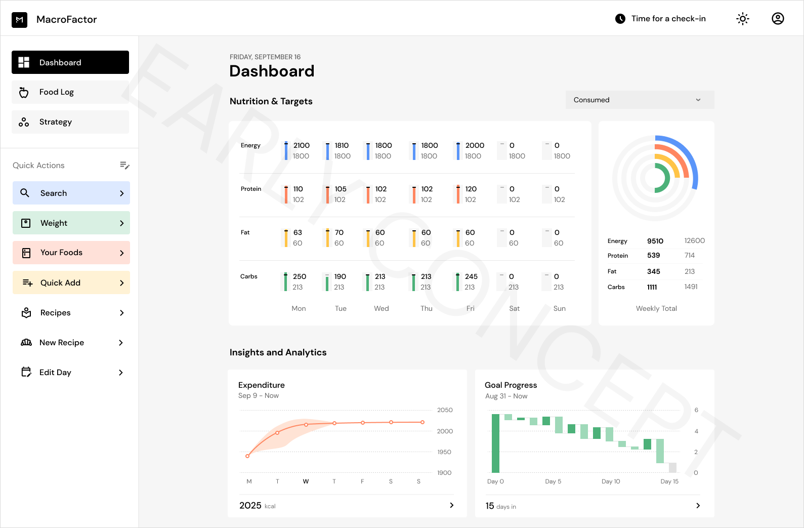 Our biggest project for this season was reimagining MacroFactor’s main dashboard (your “homepage” of the app) and many of its internal analytics and insights pages (like Expenditure and Weight Trend).